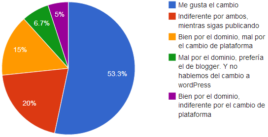 Ha habido un total de 60 votos, de los cuales a más del 50% (32 personas para ser exactas) les gusta el cambio. Al 25% (15 personas) les es indiferente el cambio de plataforma.